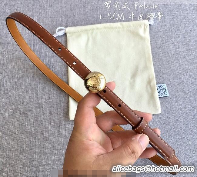 Top Grade Loewe Pebble Belt 1.5cm in Calfskin Leather LW091201 Brown/Gold 2025