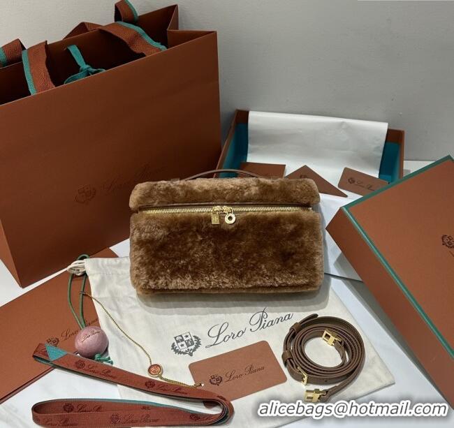 > Loro Piana Handbag > Top Grade Loro Piana LP Extra Pocket Pouch L19 in Shearling & Leather 2301 Brown 2025