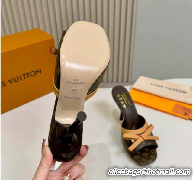 Cheap Price Louis Vuitton LV x TM Cherie Heel Slides Sandal 5.5cm in Brown Monogram Canvas with Bow 0712058