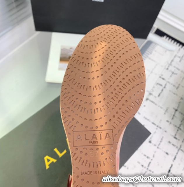 Top Grade Maison Alaia Criss Cross Wedge Pumps 14.5cm in Patent Calfskin Nude 0219007