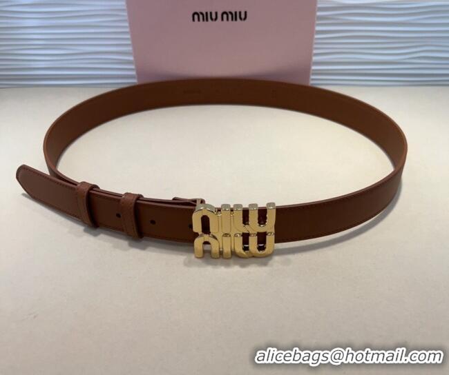 Top Grade Miu Miu Calfskin Belt 3cm with MIU Buckle MM102201 Brown/Gold 2024