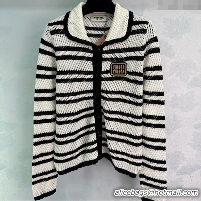 > Clothes Online > Miu Miu Clothes > Top Grade Miu Miu Wool Striped Cardigan 0814 White/Black 2025