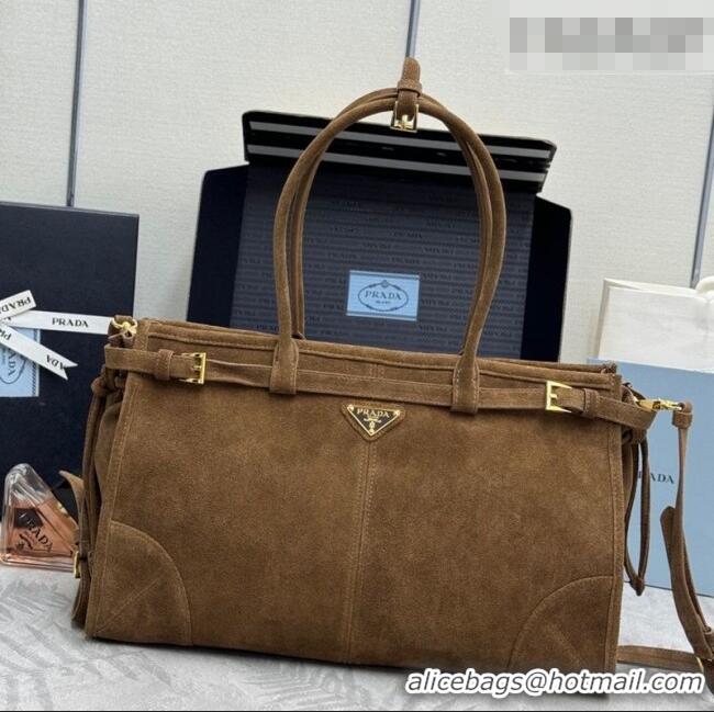 Best Quality Prada Bonnie large suede handbag 1BA433 Dark Brown 2025