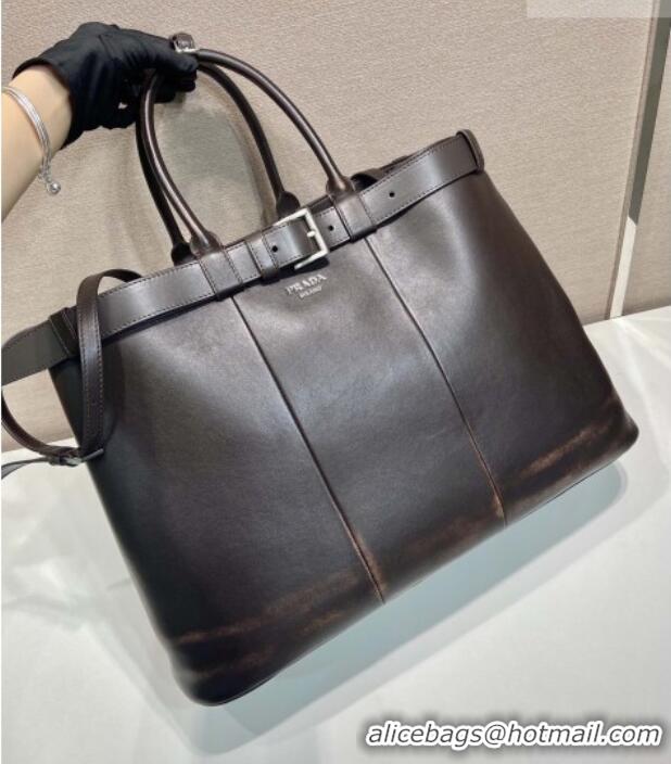 Top Grade Prada Mens Buckle Large Leather Bag with Buckle Belt 1BG126 Dark Brown 2026