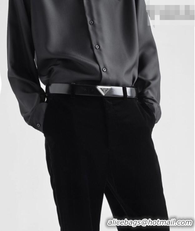 Top Grade Prada Men's Shiny Leather Belt 3.5cm with Tiangle Buckle 0315 Black/Gold 2025