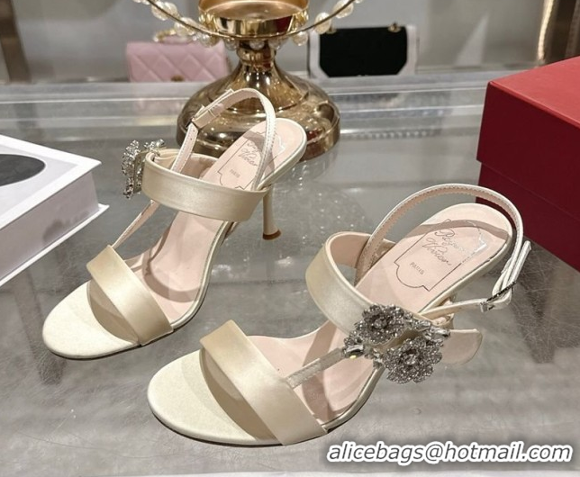 Pretty Style Roger Vivier Strass Flower Heel Sandals 7.5cm in Satin 0225034 White 2026
