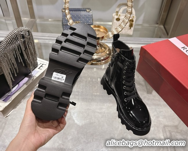 Top Grade Roger Vivier Viv' Rangers Truck Ankle Boots 5cm in Patent Leather with Metal Buckle Black 1212034 2026