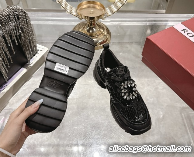 Top Grade Roger Vivier Viv' on the Run Sneakers in Leather & Mesh with Strass Buckle 03 Black 5112213 2026