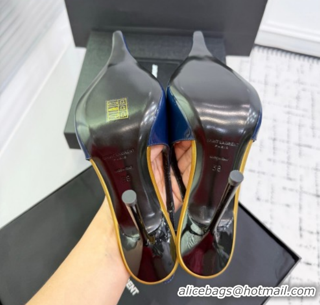 Top Grade Saint Laurent AMALIA Heel Slingbacks Pump 11cm in Patent Leather Blue 1212088