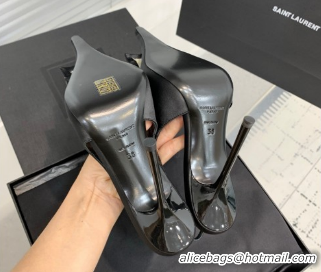 > Shoes Plaza > Yves Saint Laurent Shoes > Top Grade Saint Laurent AMALIA Heel Slingbacks Pump 11cm in Satin Crepe with Square Rose Black Upper 1212094