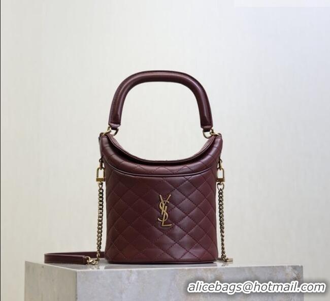 > Yves Saint Laurent Bag > Inexpensive Saint Laurent Gaby Bucket Bag in Quilted Lambskin 763961 Burgundy 2026