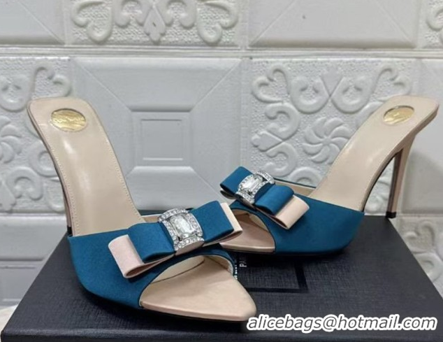 Top Grade Saint Laurent Satin Heel Slides Sandal 10.5cm with Bow Blue 2026 SL022402