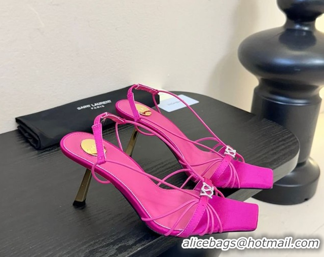 Top Grade Saint Laurent Jerry Heel Sandals 8cm in Satin with Strap Dark Pink 2026 SL022403