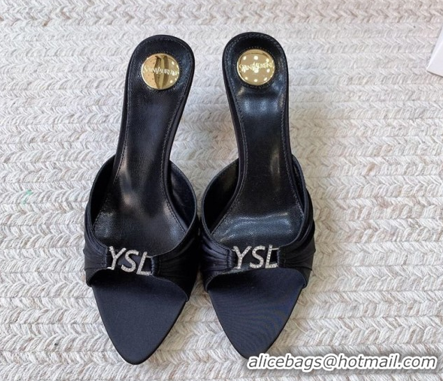 Top Grade Saint Laurent Jerry Heel Slides Sandal 6cm in Satin Crepe Black 2026 8696549