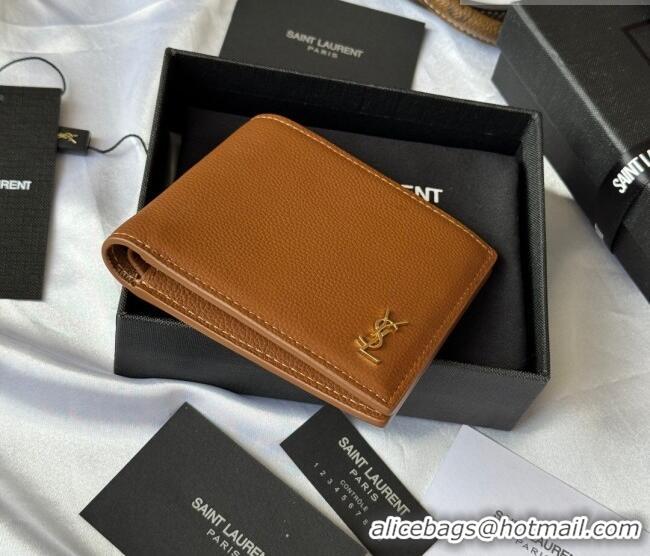Top Grade Saint Laurent Men's Tiny Cassandre Eastwest Wallet in Grained Leather 607727 Brown 2026