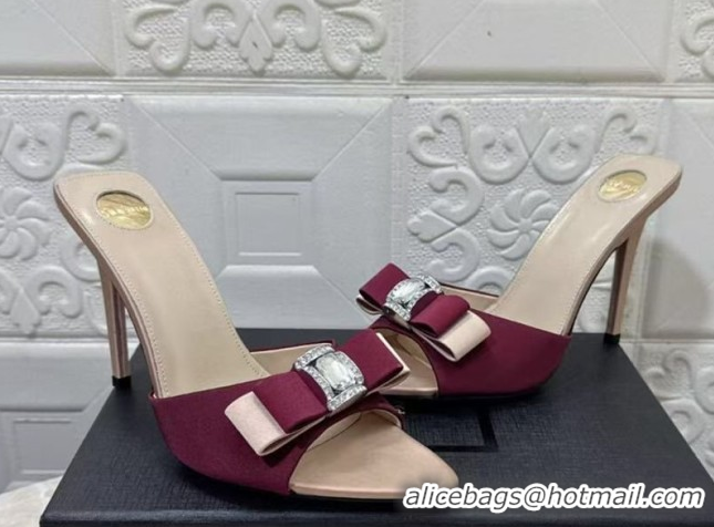 Pretty Style Saint Laurent Satin Heel Slides Sandal 10.5cm with Bow Burgundy 2026 SL022402