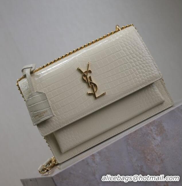 Best Quality Saint Laurent Sunset Medium Bag in Crocodile Embossed Leather 442906 White/Gold 2025