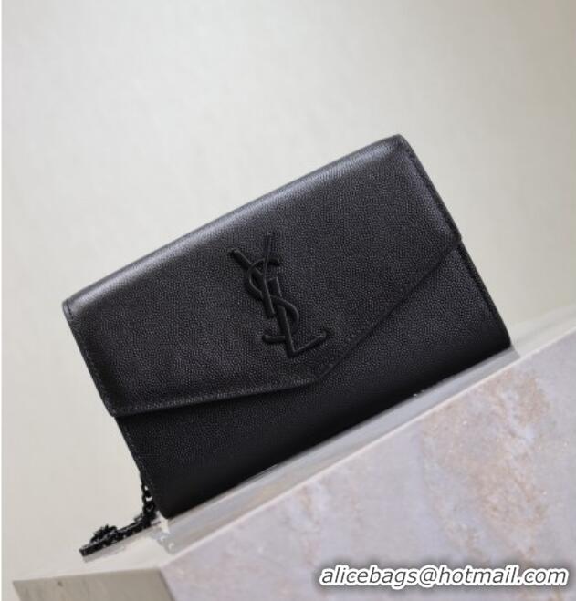 Big Discount Saint Laurent Uptown Chain Wallet in Grained Leather 607788 All Black 2025