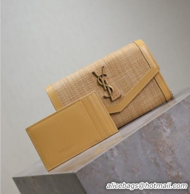 > Yves Saint Laurent Bag > Top Grade Saint Laurent Uptown Chain Wallet in Straw and Leather 607788 Yellow 2025