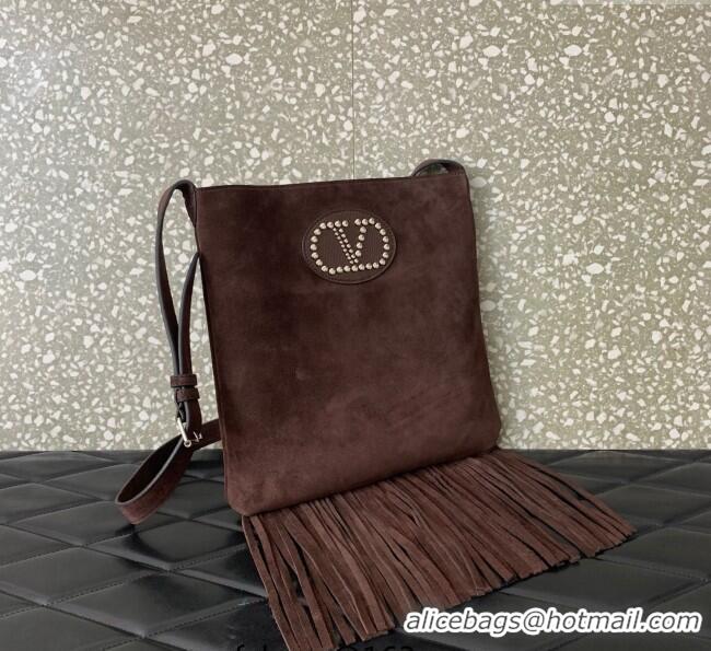 Your Position: Home > Valentino Handbag > Grade Quality Valentino Nellcote Shoulder Bag in Suede with Stud VLogo Signature and Fringes Tassel 2026 Brown 2025