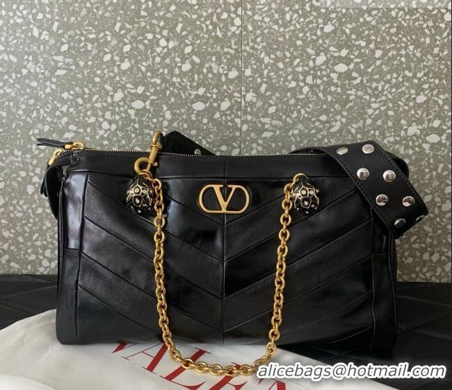 Inexpensive Valentino Panthea HandBag in V Shiny and Matte Nappa Leather 0070 Black 2026