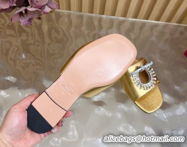 Low Cost Valentino Strass Embellished Flat Slides Sandal in Calfskin Leather Gold VLTN121509 51215114