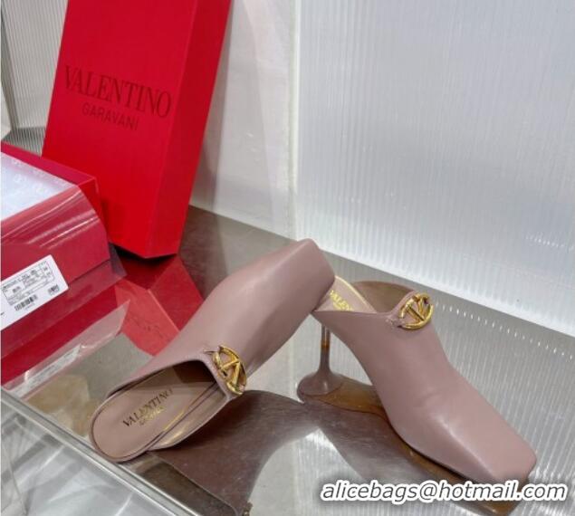 Top Grade Valentino The Bold Edition VLogo Heel Mules 6.5cm in Lambskin Nude 0227021