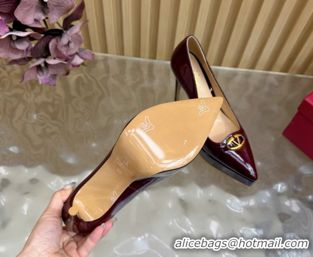Classic Hot Valentino The Bold Edition VLogo Platform Pumps 11.8cm in Patent Leather Dark Burgundy VLTN121602 1216013