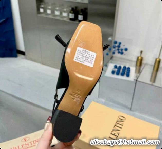 Top Grade Valentino VALET DU ROI Slingbacks Pump 6cm in Calfskin Leather with Tassel Bow Black/Brown 1215039