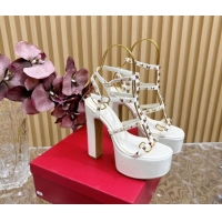 Best Grade Valentino Rockstud Ankle Strap Platform Sandals 15.5cm in Patent Calfskin White 612114