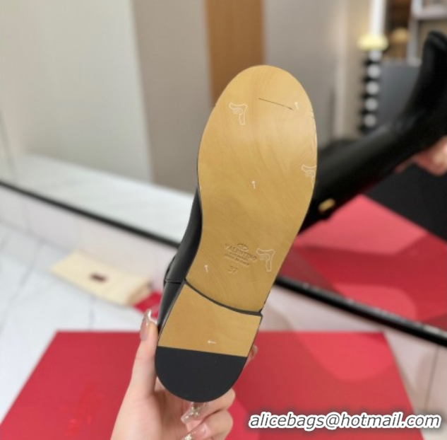 Top Grade Valentino VLogo Signature Flat High Boots with Buckle Strap in Calfskin Black 2025 VA082101