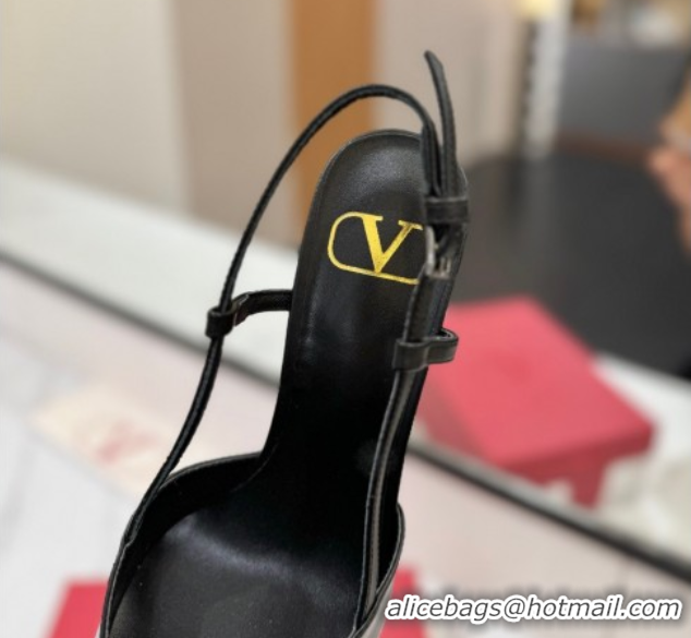 Top Grade Valentino VLogo Signature Slingback Pumps 8cm in Matte Calfskin Black/Gold 2025 VA082110