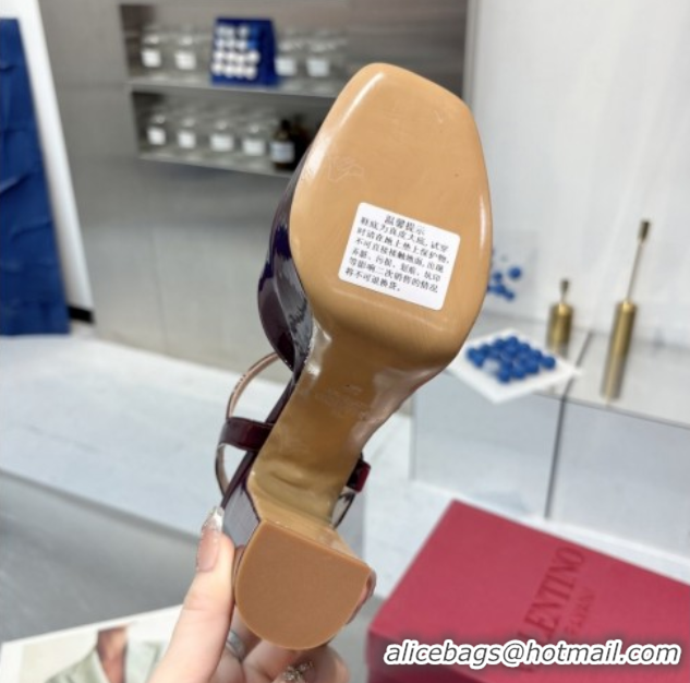 Top Grade Valentino Vlogo Signature Platform Pumps 11cm in Patent Leather Dark Burgundy 0902076