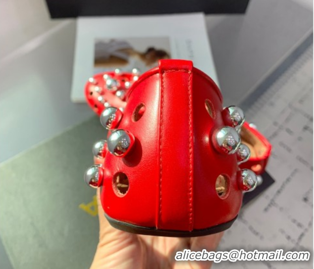 Buy Duplicate Alaia Ballet Flats with Silver-Tone Spheres in Calfskin Red 1223020