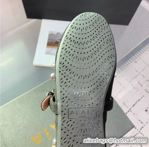 Top Quality Alaia Ballet Flats with Silver-Tone Spheres in Suede Black 1223021
