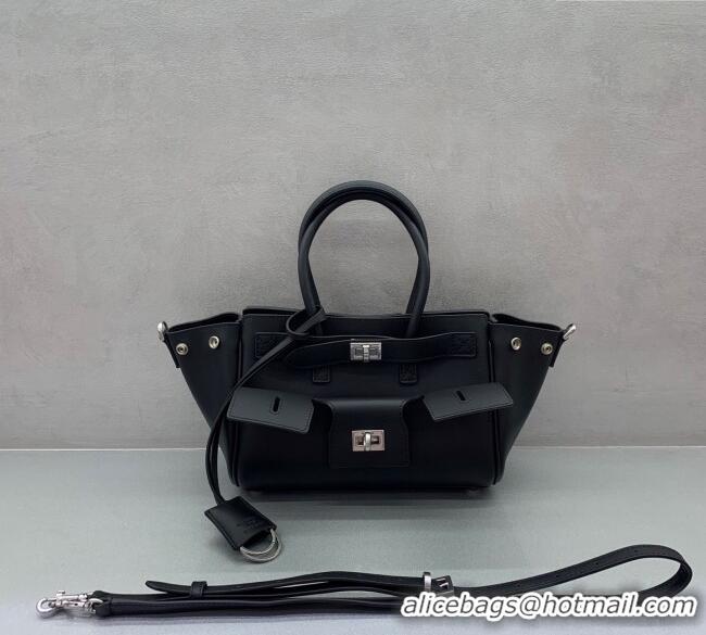 Good Taste Balenciaga Bel Air Carry All Tote Bag Mini in smooth calfskin, aged-silver hardware 11120 Black 2025
