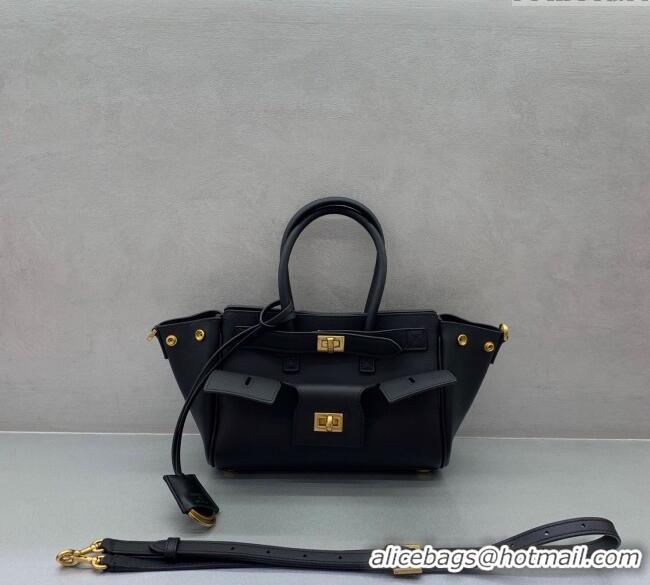 Top Quality Balenciaga Bel Air Carry All Tote Bag Mini in smooth calfskin, aged-gold hardware 11120 Black 2025
