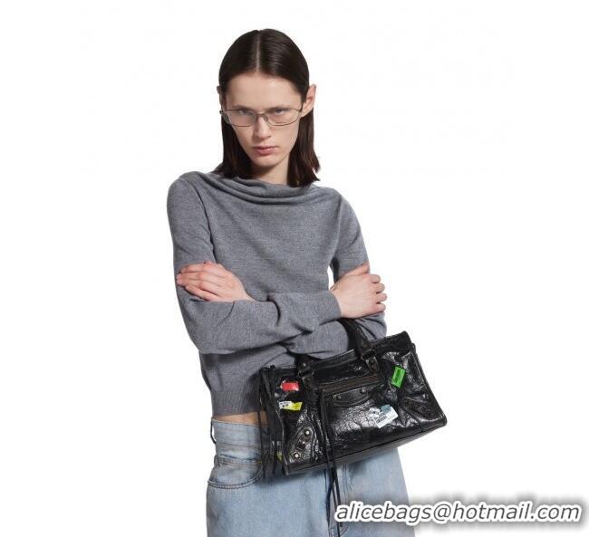 Buy Discount Balenciaga Le City Bag Small in black Arena Storico lambskin with printed stickers B0623 2025