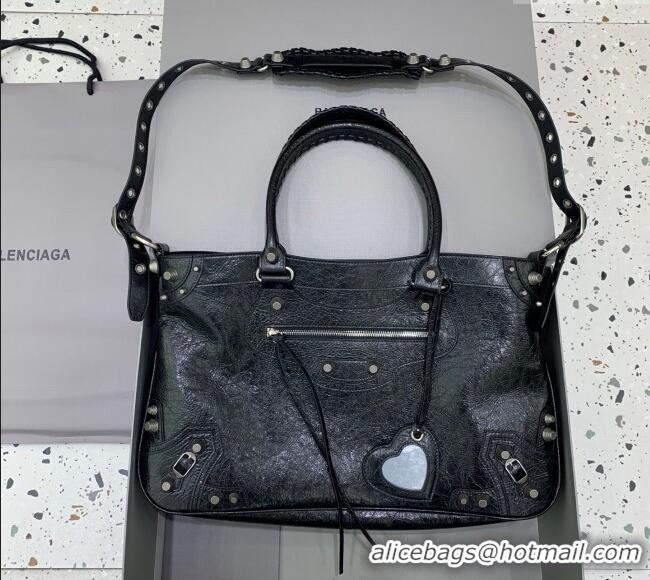 > Balenciaga Handbag > Top Quality Balenciaga Neo Cagole XL Plus Tote Bag in Black Arena lambskin 48091 Black aged-silver hardware 2025