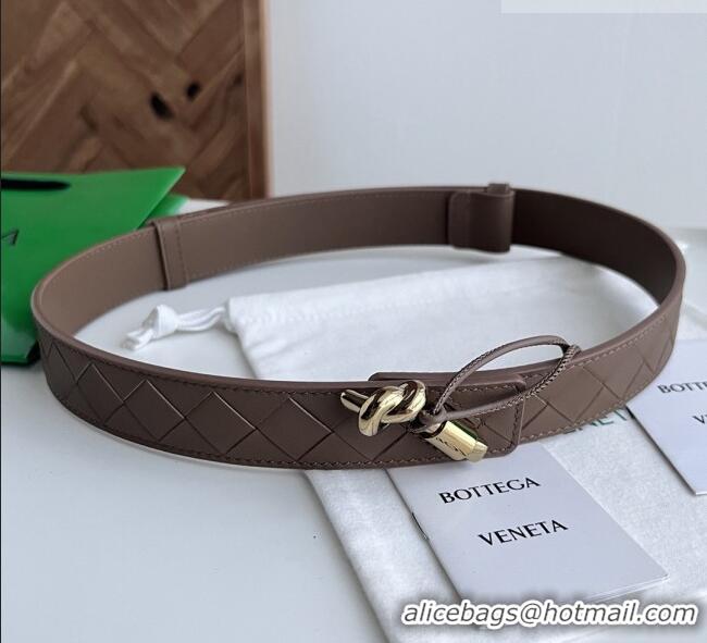 Good Product Bottega Veneta Women's Soft Calfskin Belt 1.5cm with Knot Buckle 0315 Dark Brown/Gold 2025