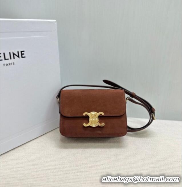 Top Quality Celine Teen Triomphe Mini Bag in Grained Nubuck Chestnut 188423 Brown 2026