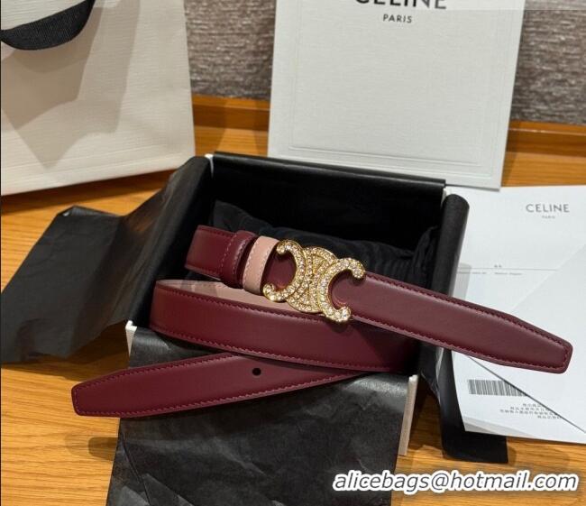 Well Crafted Celine Triomphe Calfskin Leather Belt 2.5cm with Strass CE091104 Burgundy/Pink 2025