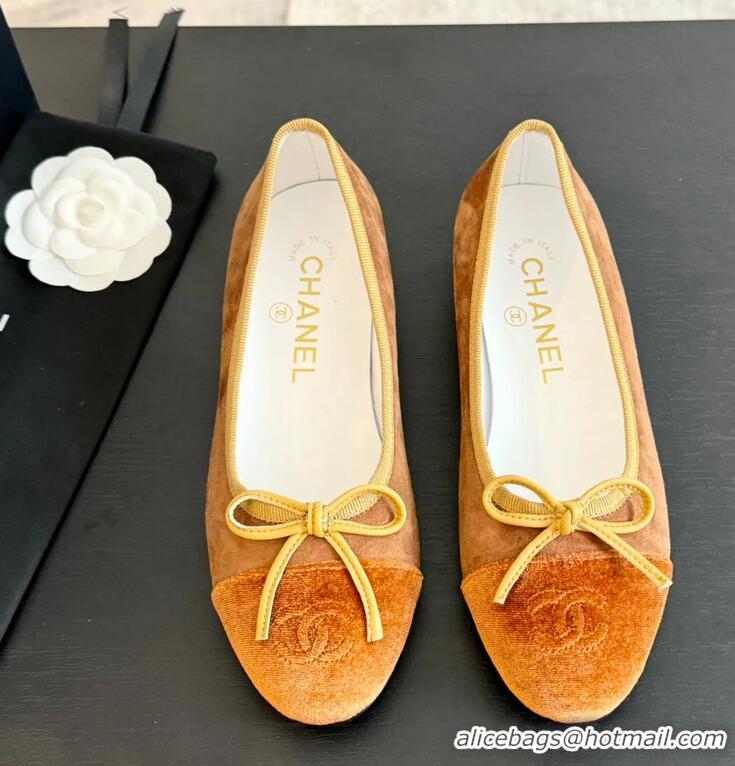 Top Quality Chanel CC Ballet Flat With Bow Suede CH1023 Brown/Amber Canvas