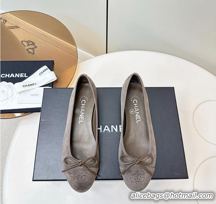 Low Price Chanel 25 Ballet Flat With Bow Suede CH1023 Grey/Taupe