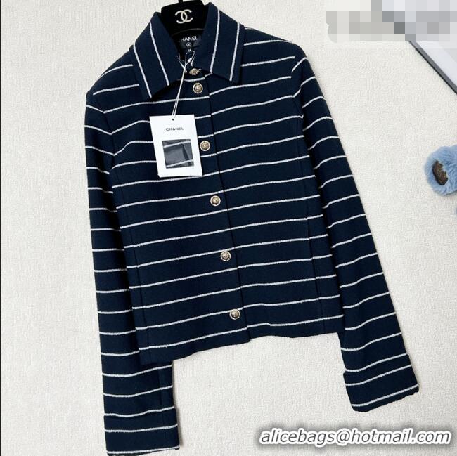 Top Grade Chanel Striped Jacket CH011301 Navy Blue/White 2026