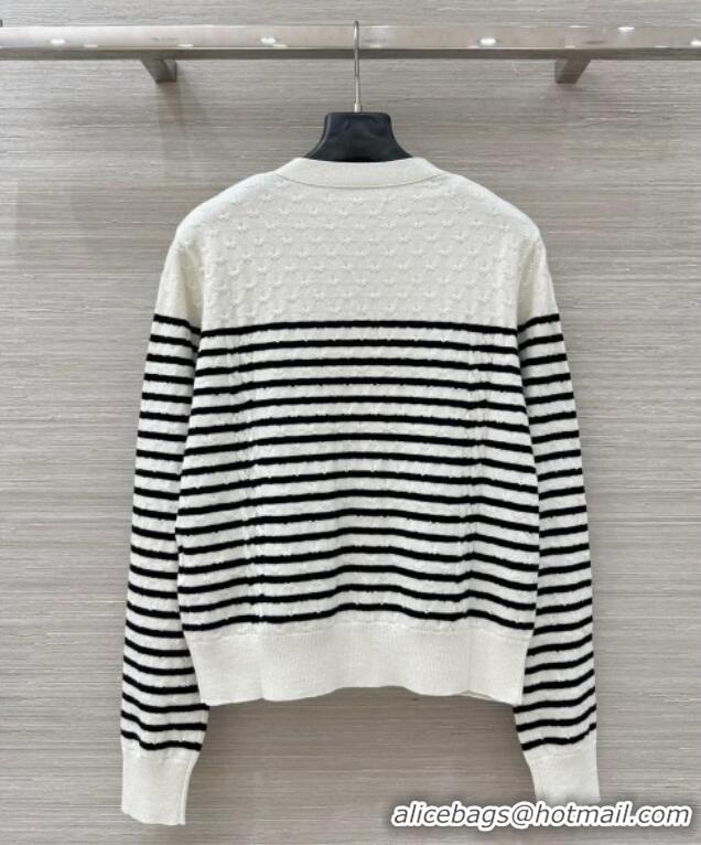Top Quality Chanel Coco Striped Cardigan CH091902 White 2025
