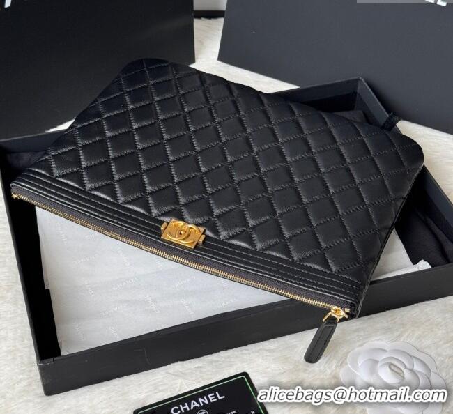 Top Quality Chanel Lambskin Leboy 2.55 Pouch 9847-1 Black/Gold 2025