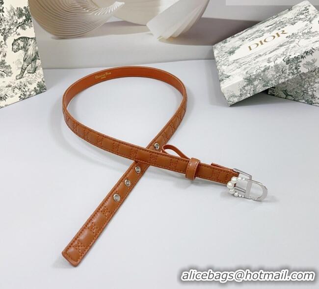 Best Quality Dior Oblique Leather Belt 2cm with Pearls CD Buckle 0108 Brown/Silver 2025