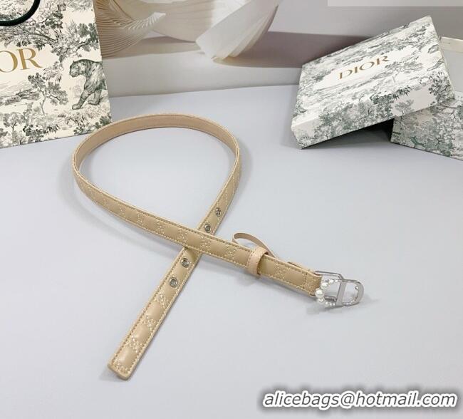 Luxury Discount Dior Oblique Leather Belt 2cm with Pearls CD Buckle 0108 Beige/Silver 2025