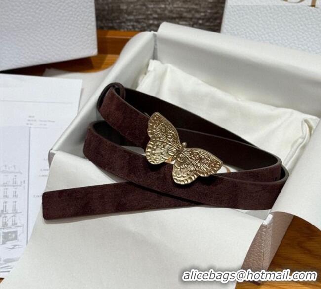 Top Quality Dior Suede Belt 2cm with Butterfly Buckle DR031703 Dark Brown 2026